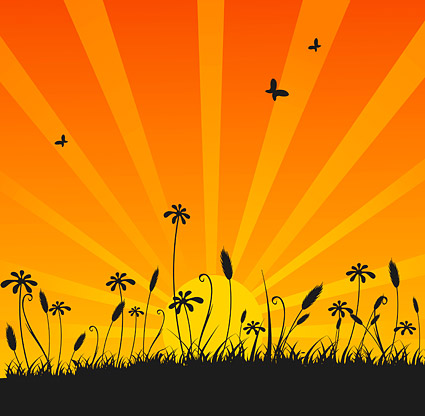 eps format, including: flowers, bushes silhouettes, background radiation light……