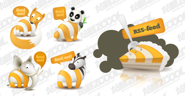 eps format, png formats, including jpg preview, keyword: Vector rss subscriptions, feed, zebra, elephants, pandas, foxes, cake, fork, vector icons, vector material