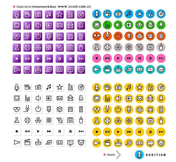 ai formats, including jpg preview, keyword: Vector icons, simple graphics, symbols, commonly used graphics, microphone, video, digital cameras, photos, music, musical notes, stars, cd, disc, display, volume, sound, arrow , mail, lighting, a smiley face, pens, power off, pencils, colored funding, preservation, cell phones, chemical containers, utensils, tennis, cell phone signal, documents, mouse, playback controls, buttons, notice, help, tapes, slides, vector material