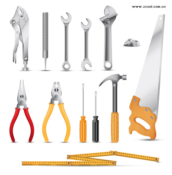 eps format, including jpg preview, keyword: Vector tools, pliers, wrenches, screwdriver, hammer, saw, ruler, vector material
