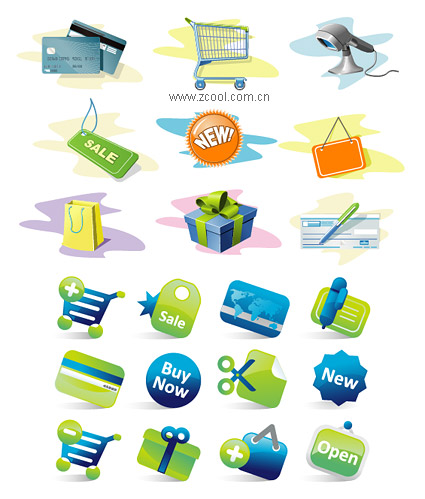 eps format, including jpg preview, keyword: vector icons, web page design to category icon, clearing, credit cards, bank cards, shopping cart, sale, labeling, new, listing, label, shopping bags, gifts, shopping cart, pens, scissors, buttons, vector material