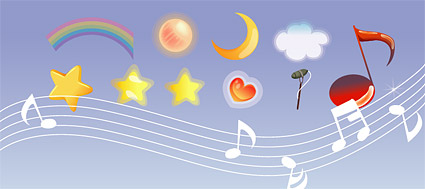 ai format, keyword: stars moon planet heart-shaped clouds music notes……