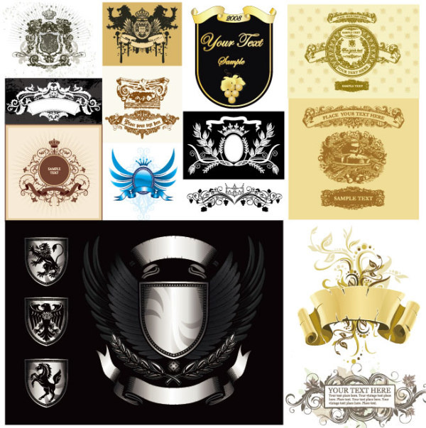 Keywords European wings of nostalgia retro patterns grapes Ribbon shield wheat banner gorgeous royal eagle lion horse Vector material